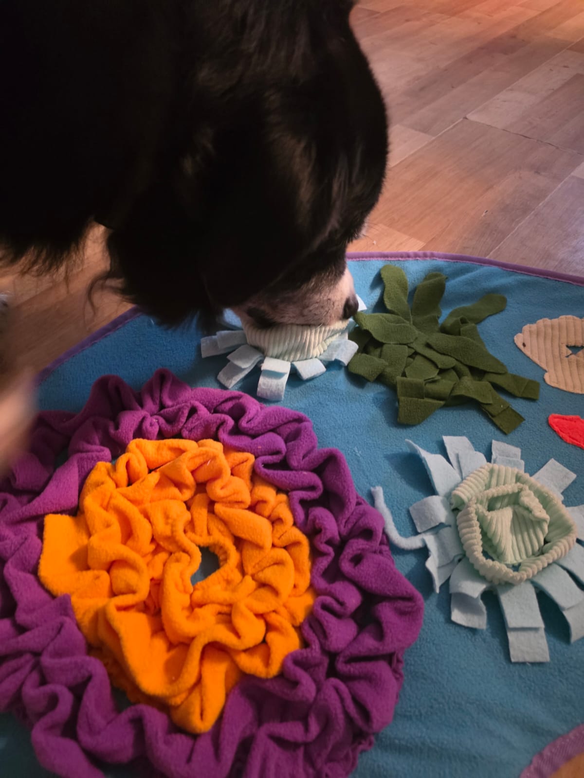 Die verschiedenen Stoffe und Verstecke beschäftigen die Hunde richtig schön – und zwar sinnvoll. Ob zur Auslastung, gegen Langeweile oder einfach für zwischendurch: Die Matte kommt super an. Die zwei kleinen Clownfische mit Quietschi sind das i-Tüpfelchen – besonders bei den Hunden, die gern tragen oder spielen.